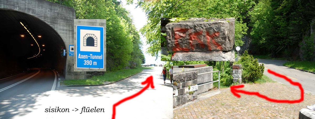 zufahrt von sisikon -> flüelen: PP runder gelber punkt verwenden. VOR dem axentunnel rechts reinfahren. |